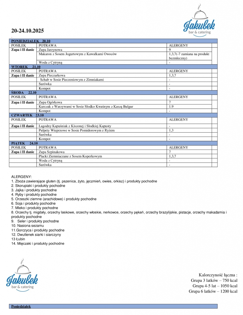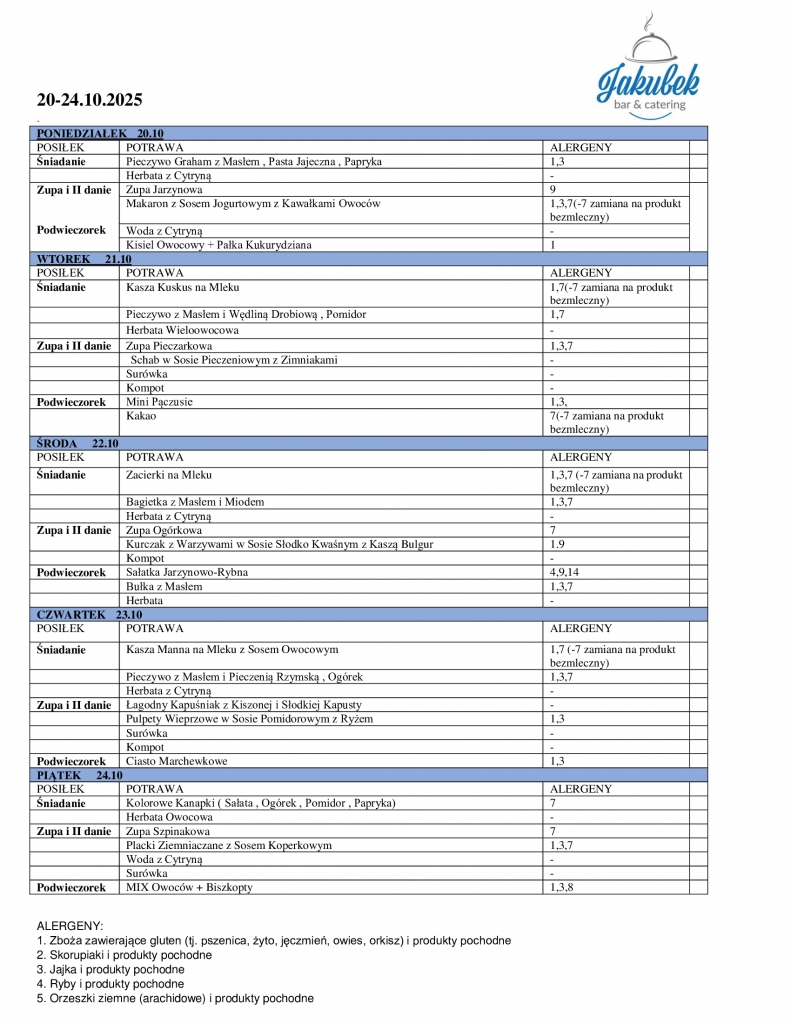 Oddziały Przedszkolne 20.10.2025 r. - 24.10.2025 r.