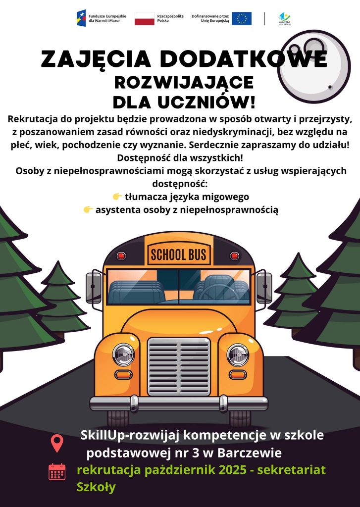 Gmina Barczewo pozyskała dofinansowanie z Unii Europejskiej na realizację projektu „SkillUp – rozwijaj kompetencje w Szkole Podstawowej nr 3 w Barczewie” Szczegóły sekretariat szkoły