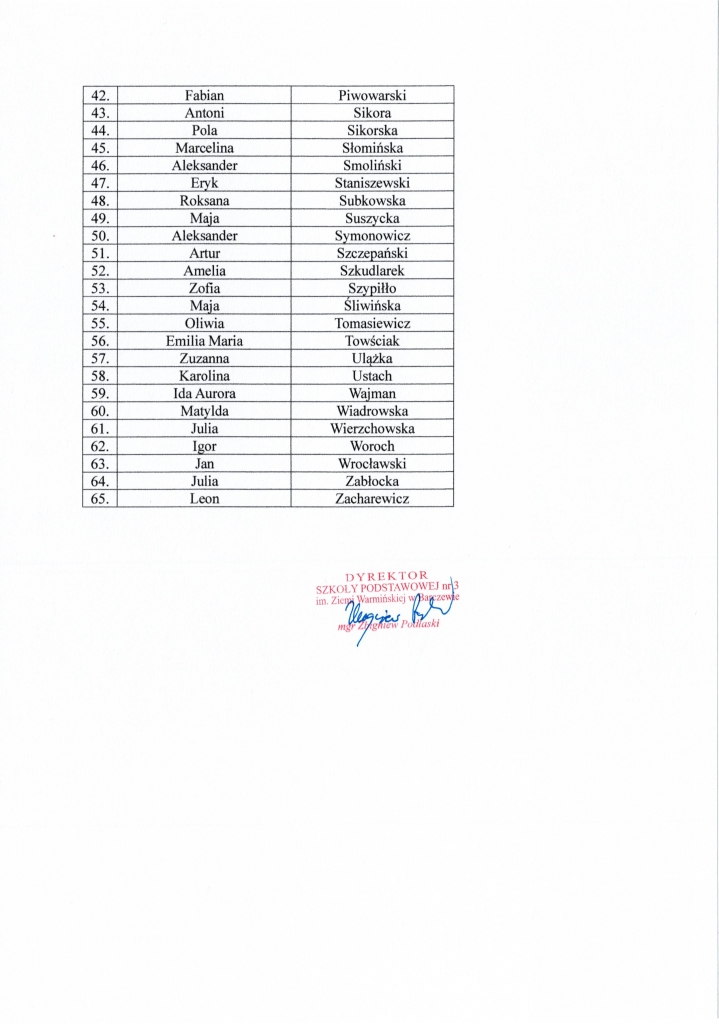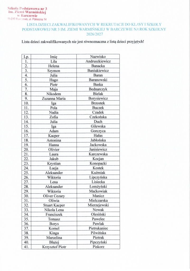 LISTA DZIECI ZAKWALIFIKOWANYCH I NIEZAKWALIFIKOWANYCH W REKRUTACJI DO KLASY I